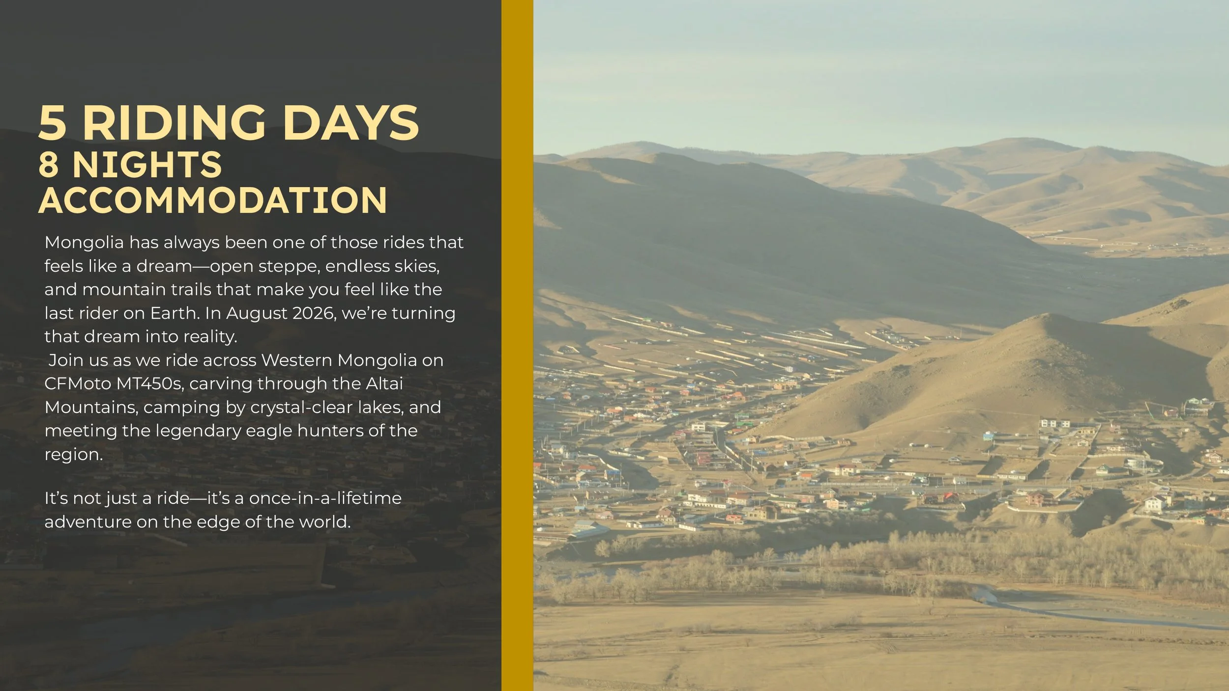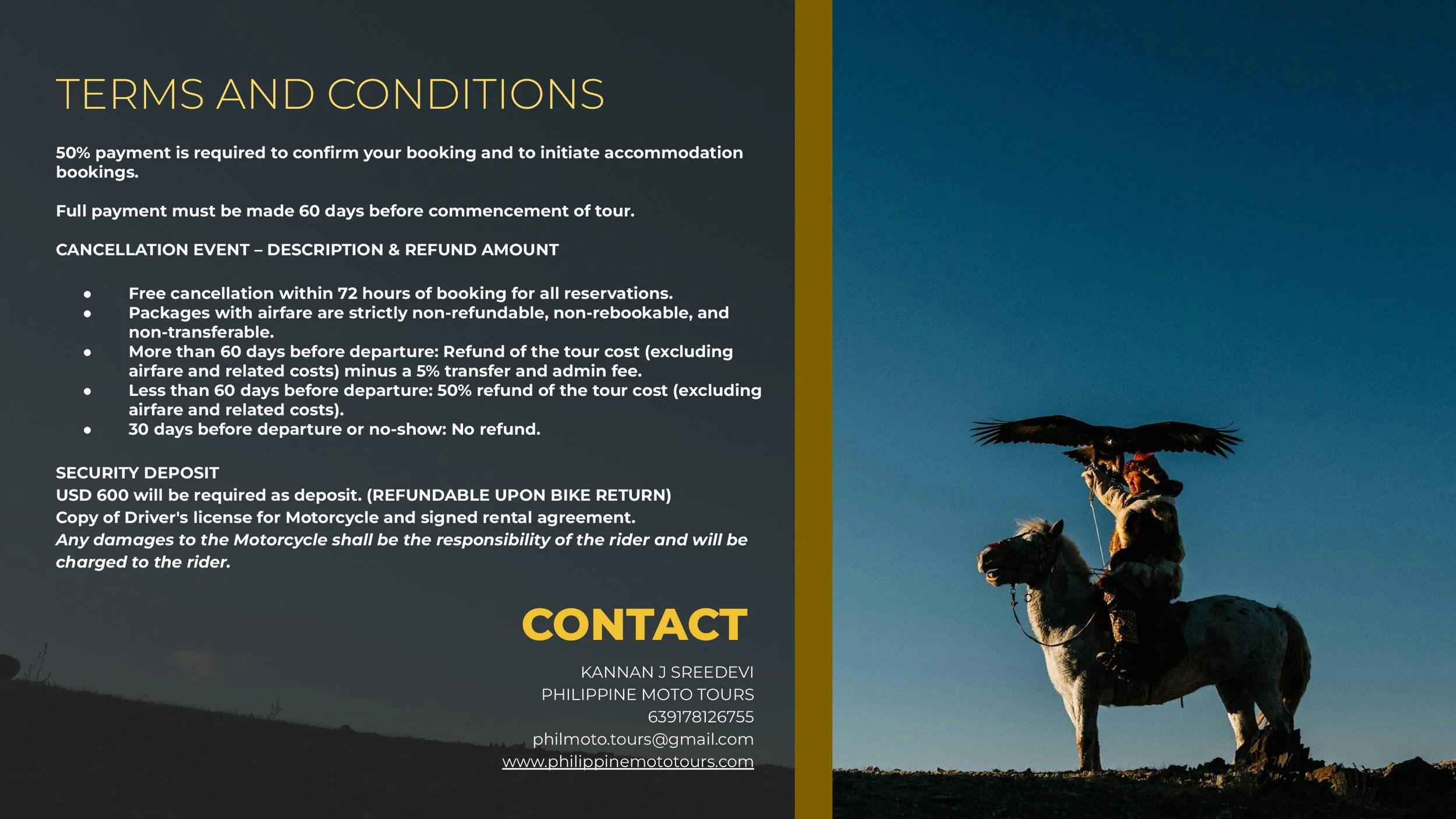 WESTERN MONGOLIA For Individual RidersREGISTER NOW For Group/Club Reservations contact us directly:WHATSAPP | VIBER +63 917 812 6755EMAIL : philmoto.tours@gmail.com